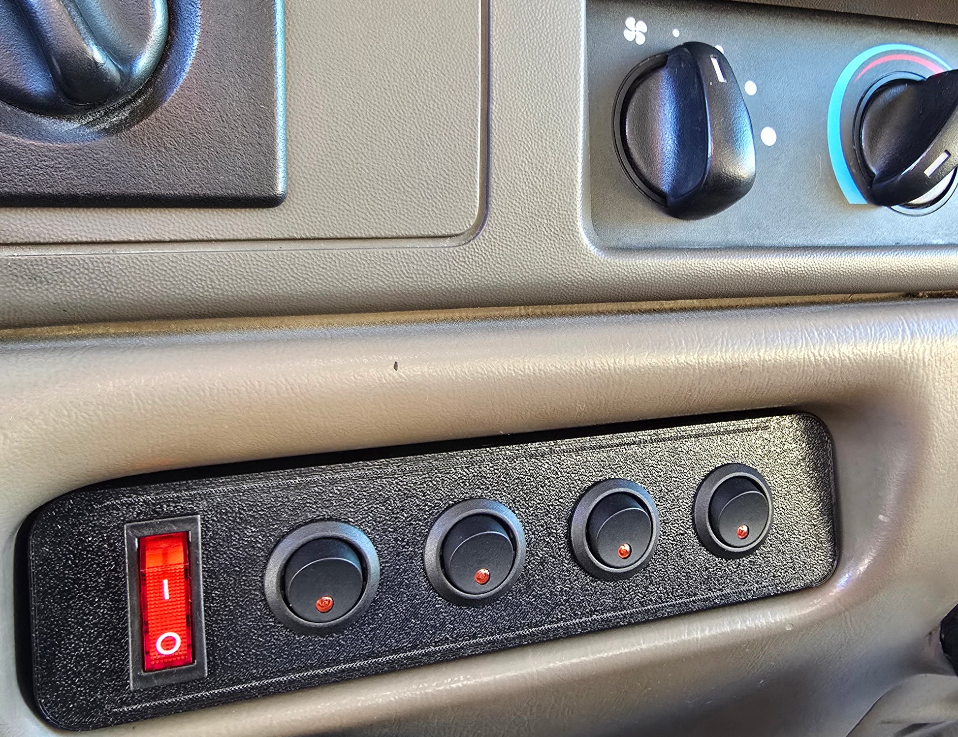 This is a pre-wired Full Size Cubby Accessory 4 Switch Panel made for the 1999-2003 Ford F-250/F-350!